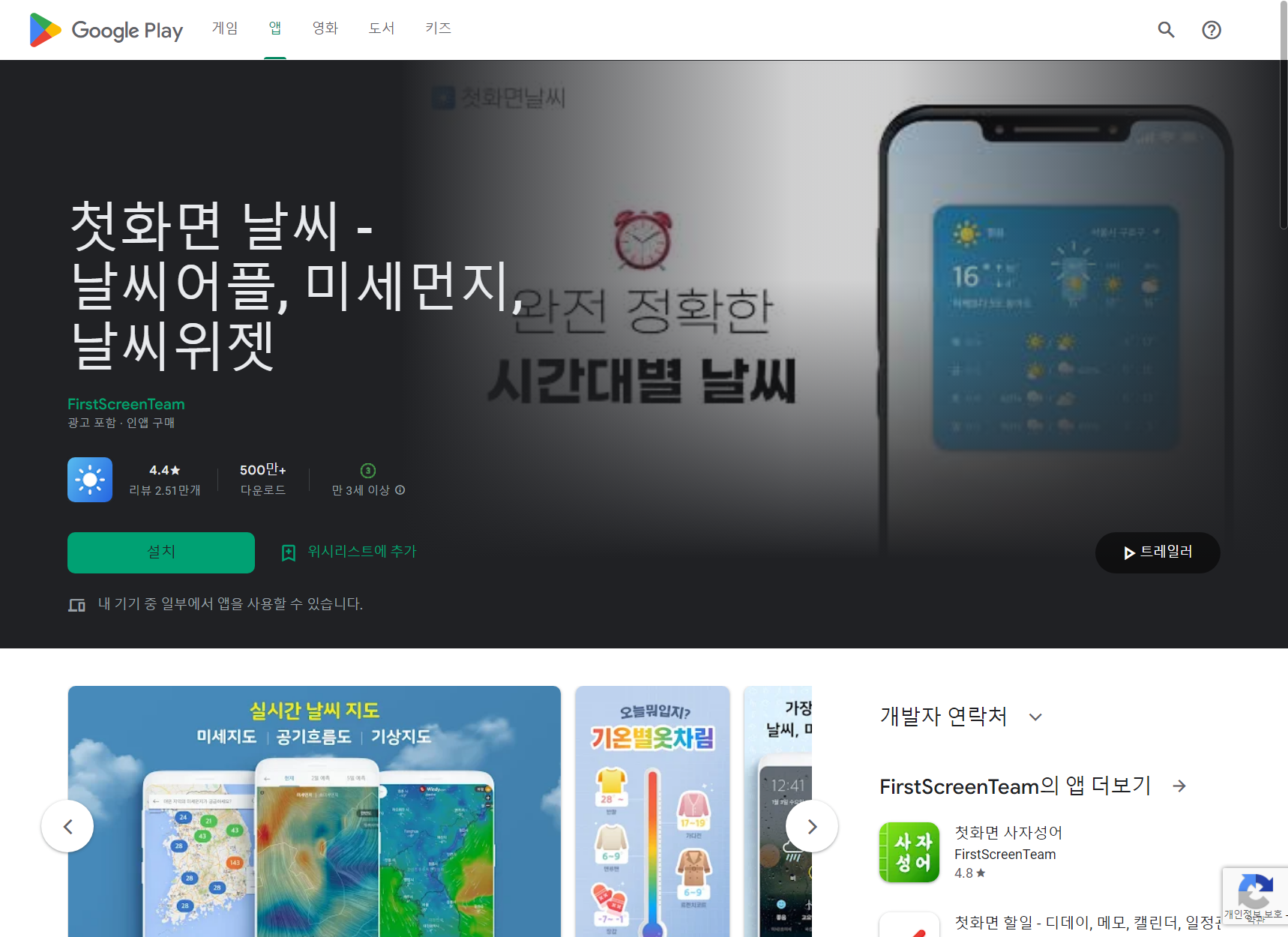 첫화면 날씨 - 날씨어플, 미세먼지, 날씨위젯 - Google Play 앱