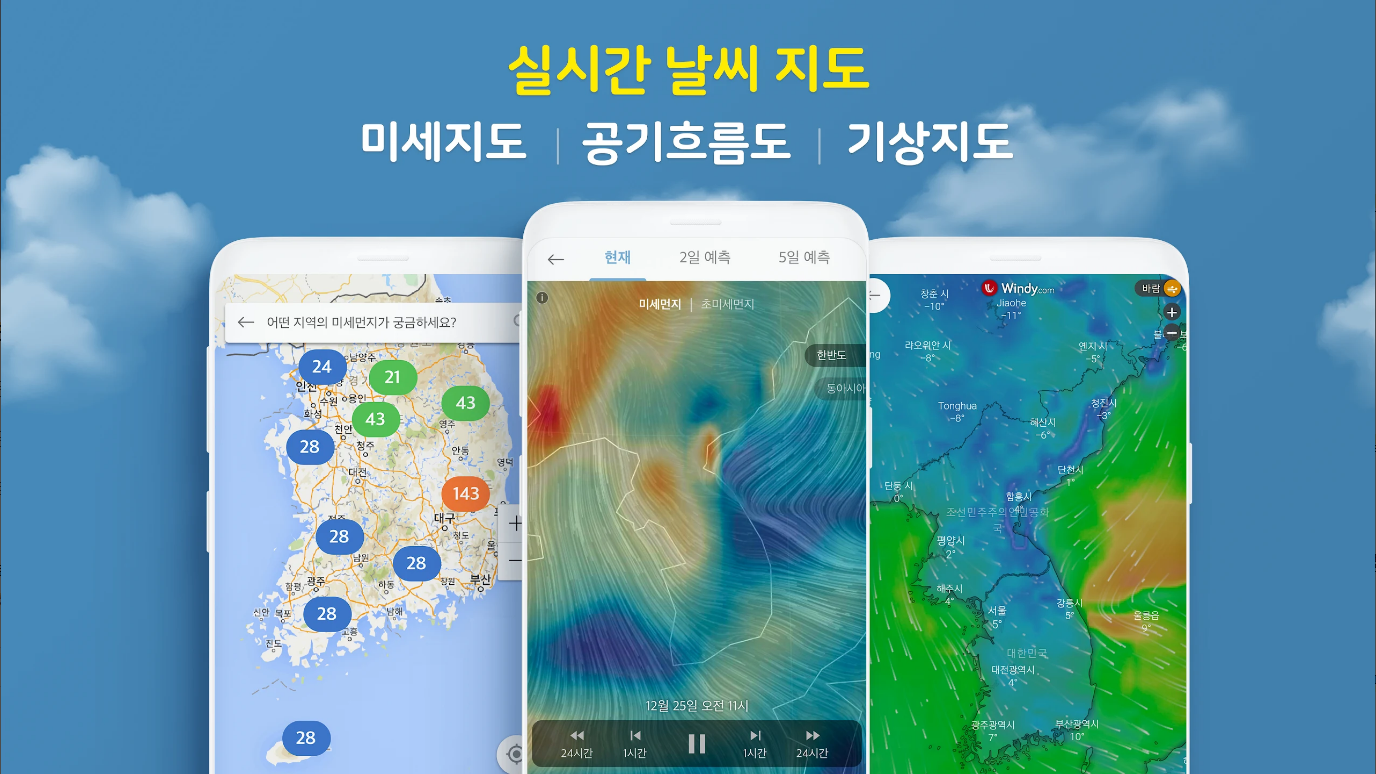 실시간 날씨 지도, 미세지도, 공기흐름도, 기상지도