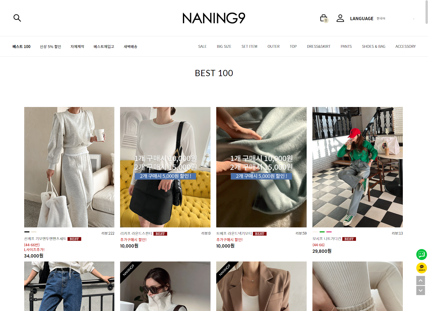 난닝구(naning9) 쇼핑몰, 난닝구닷컴 베스트100