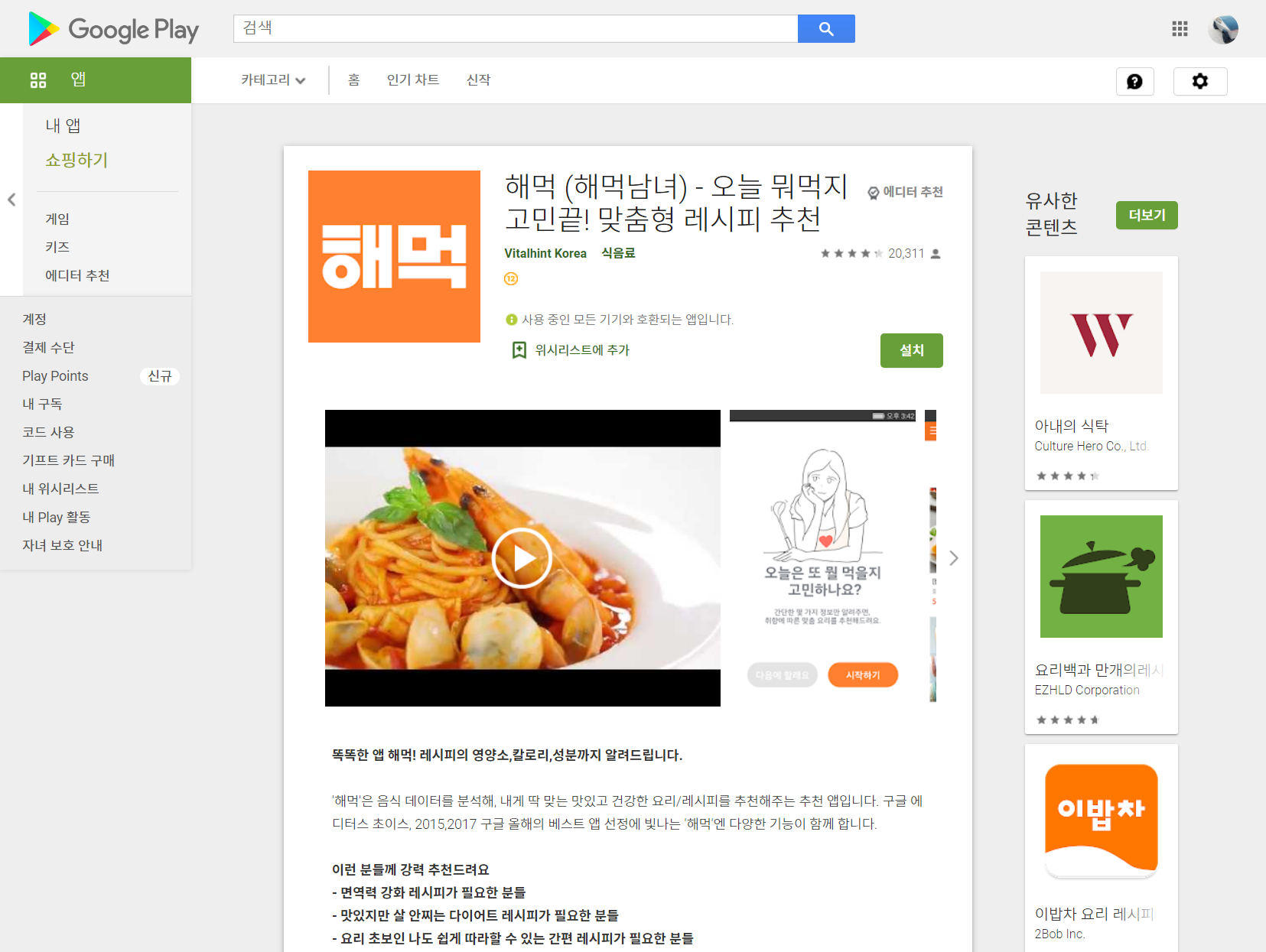 해먹 (해먹남녀) - 오늘 뭐먹지 고민끝! 맞춤형 레시피 추천 - Google Play 앱