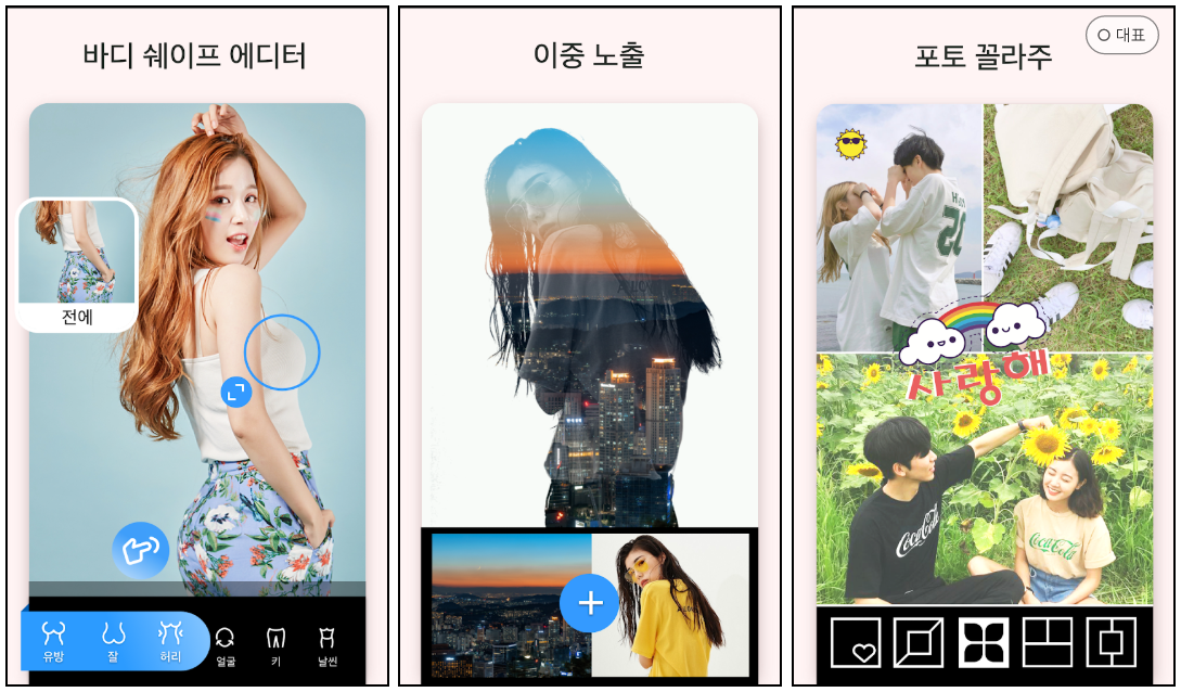 특히 포토 꼴라주, 팝스티커 및 폰트와 세련된 배경이 주는 느낌이 색다른 경험을 가능하게 합니다.