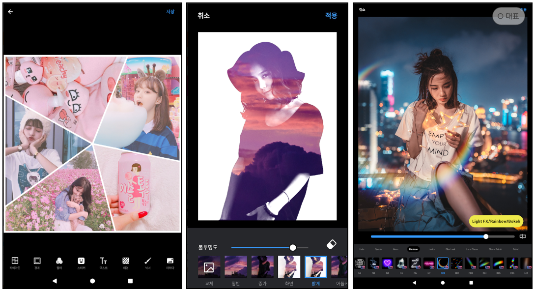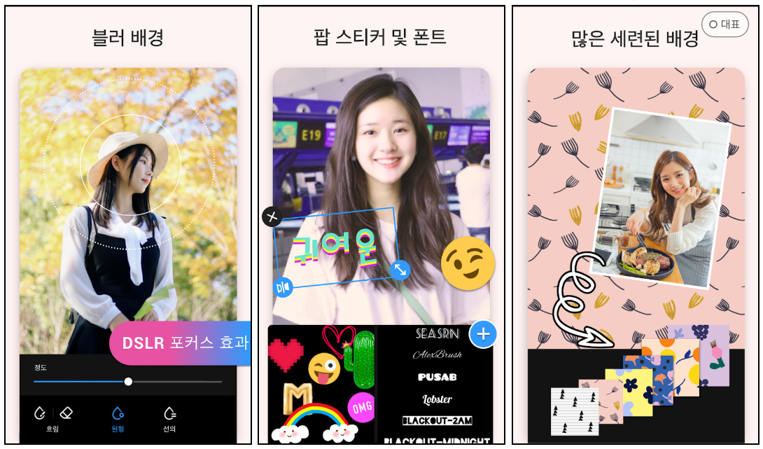 특히 포토 꼴라주, 팝스티커 및 폰트와 세련된 배경이 주는 느낌이 색다른 경험을 가능하게 합니다.