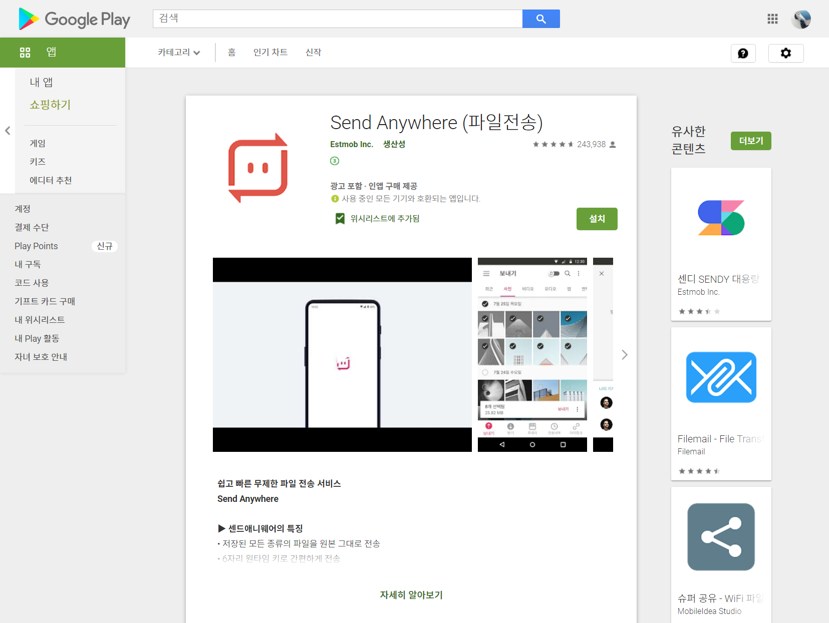 센드애니웨어(Send Anywhere) 다운로드는 여기를 참조하세요.