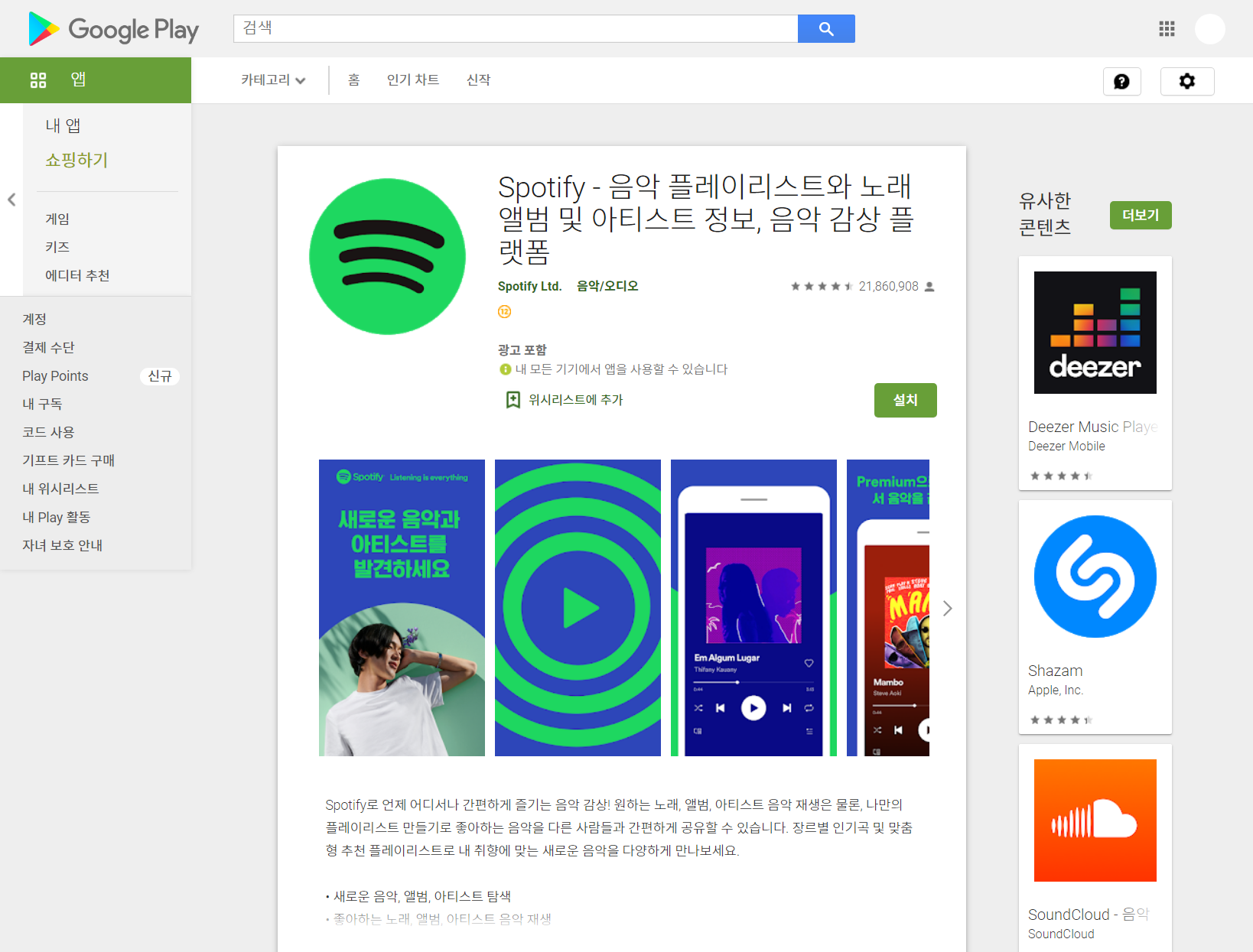 Spotify - 음악 플레이리스트와 노래 앨범 및 아티스트 정보, 음악 감상 플랫폼 - Google Play 앱
