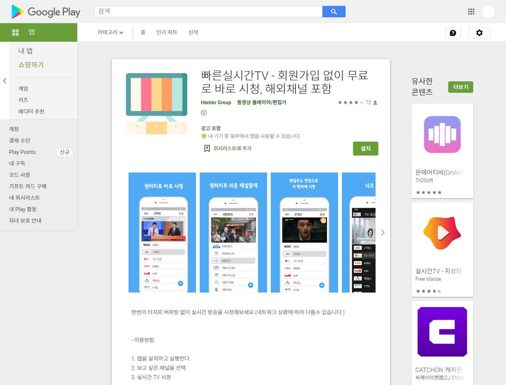 빠른실시간TV - 회원가입 없이 무료로 바로 시청, 해외채널 포함 - Google Play 앱