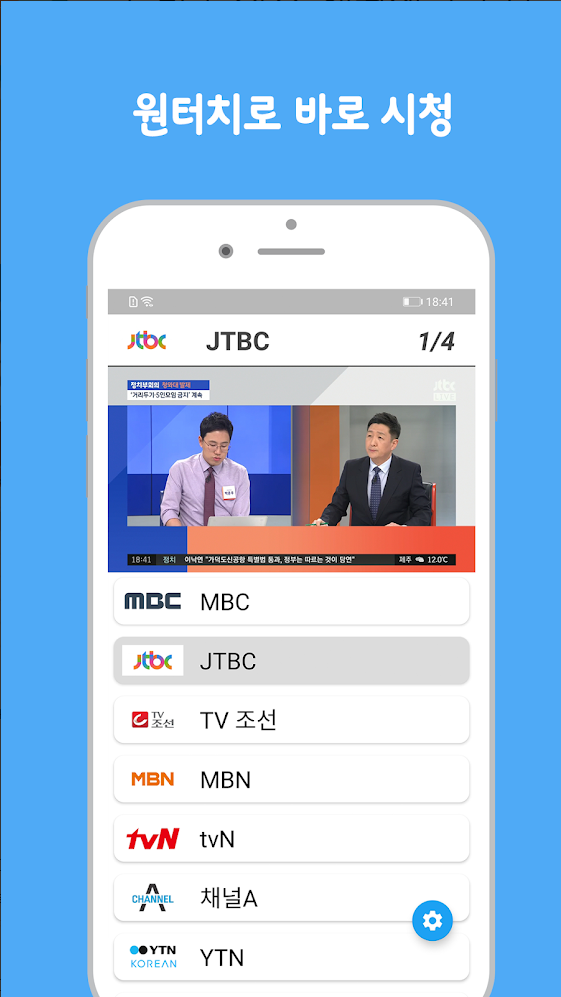한 번의 터치로 버퍼링 없이 실시간 방송을 시청해보세요.(네트워크 상황에 따라 다를 수 있습니다.)