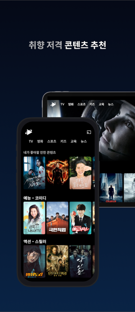 취향에 맞는 콘텐츠를 다양하게 시청할 수 있습니다.