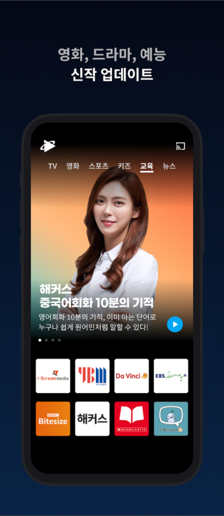 국내외 TV시리즈와 영화, 키즈, 교육, 시사 프로그램, 다큐멘터리