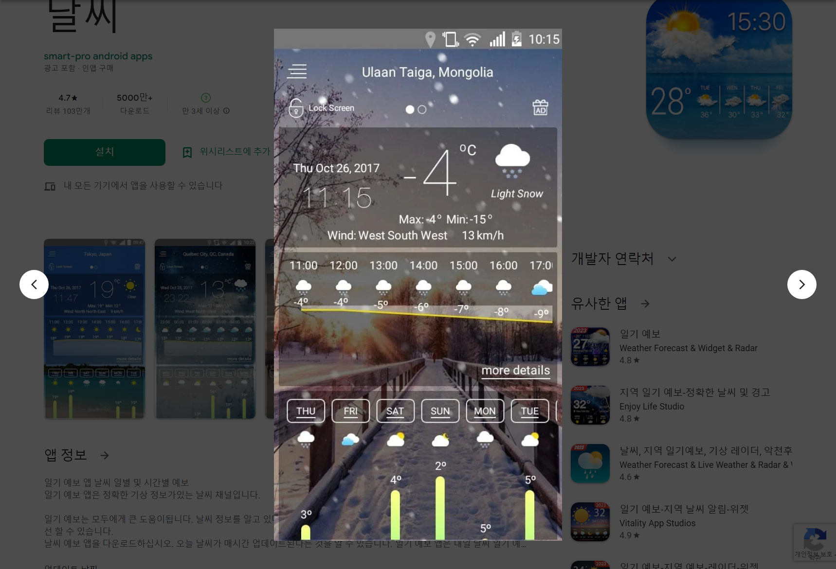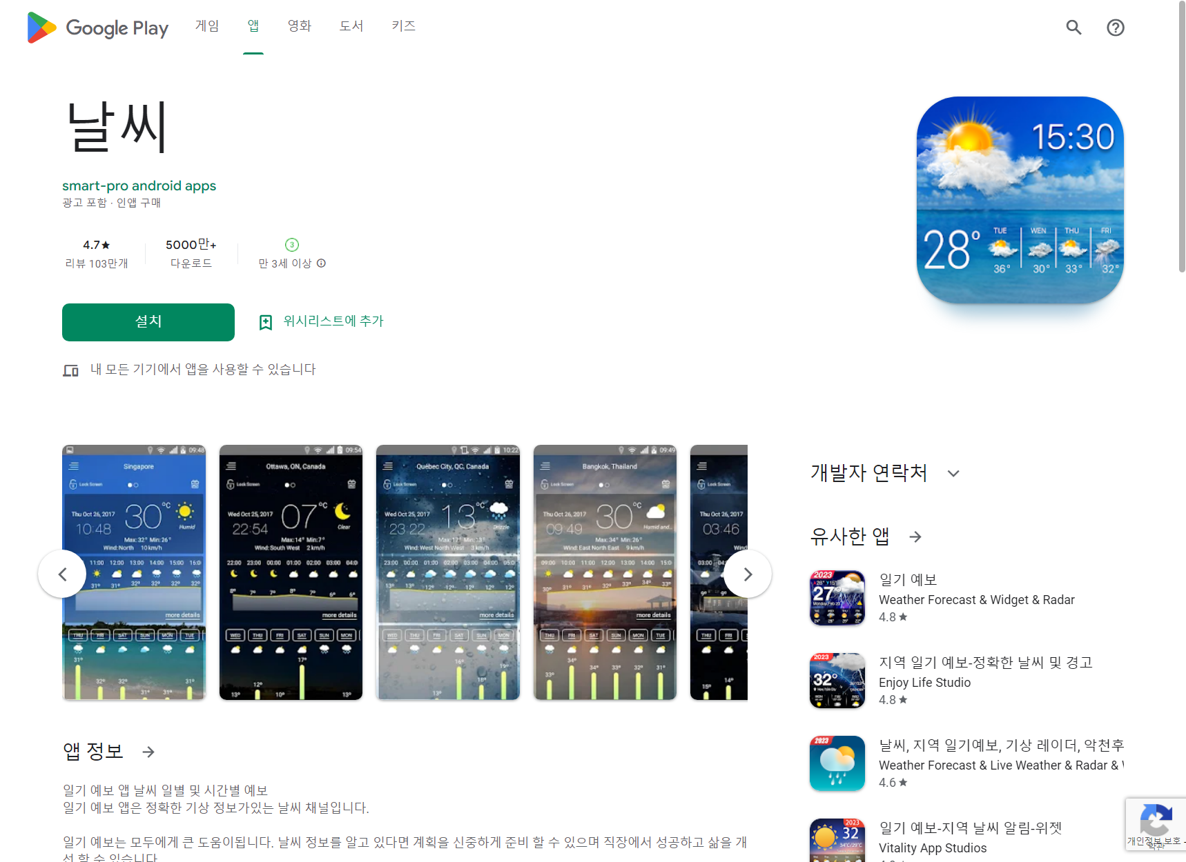일기 예보 앱 날씨 일별 및 시간별 예보